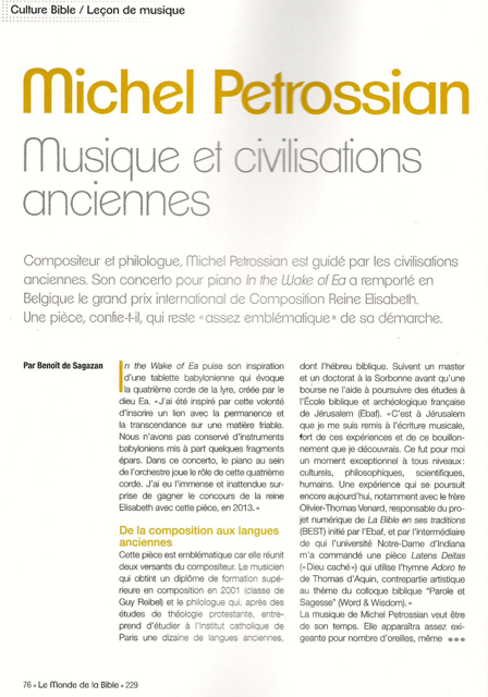Michel Petrossian, a composer in great demand throughout the world, kindly invited us to talk about his links with our research programme, on the occasion of a portrait devoted to him by *Le monde de la Bible*.